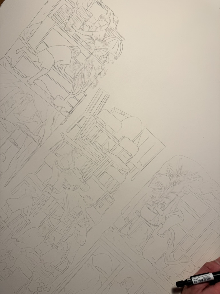 My plan is to use a one-piece painting as a way of narrating the viewer’s narrative. The continuous picture will attract the viewer’s curiosity from a visual perspective.