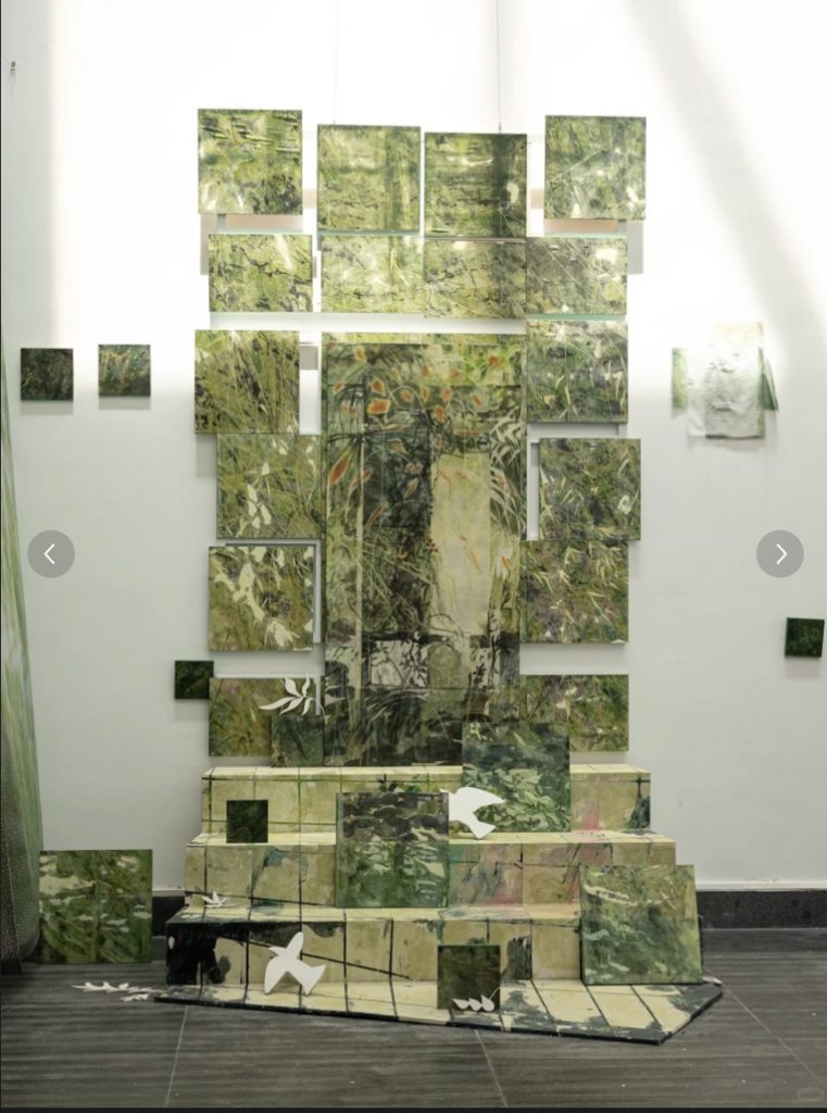 I try to start from the relationship between space and painting, to explore the ability to create landscape for space through painting. From the reference works, I saw some that were painted directly onto the cut-out shapes of the material. I also feel that the splicing and overlapping of picture frames creates landscapes.