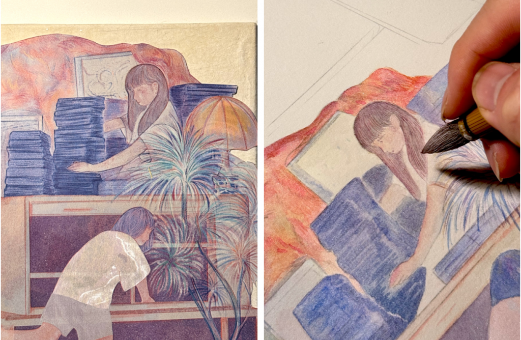 I chose to study because this artist’s approach because of his bold use of mixed media, which sparked my curiosity to explore further. His work demonstrates a deep engagement with different materials, but what stood out to me was that his creative process focuses more on constructing the image he envisions, rather than being limited by the characteristics of each medium. His works go beyond the boundaries of a single canvas—he cuts, layers, and combines multiple images, creating rich, layered compositions with a strong sense of visual hierarchy. Inspired by this, I also experimented with similar techniques in my own creative process.