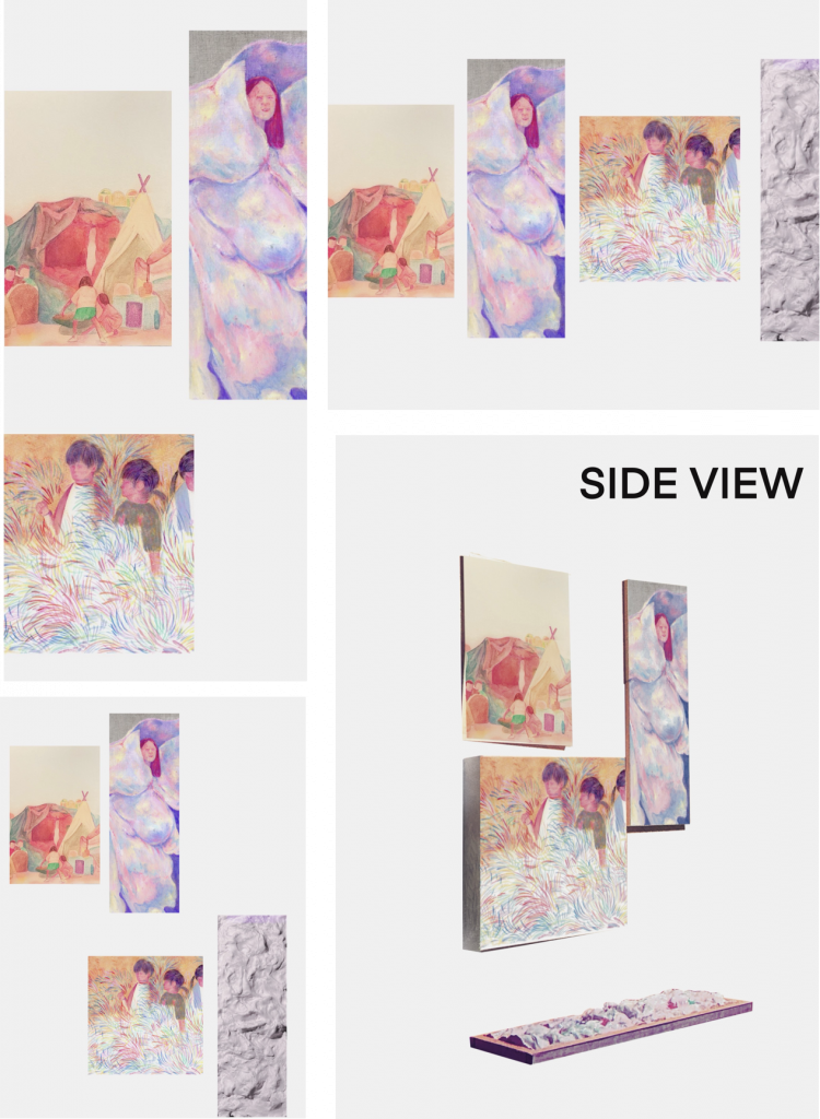 How to establish a connection with the viewer is something I consider when arranging the work. The height and distance difference when viewing the work will affect the display effect in the real space. I tried to display the work this time in a way that is close to the experience of people looking out the window. Through small windows, you can see different play scenes.