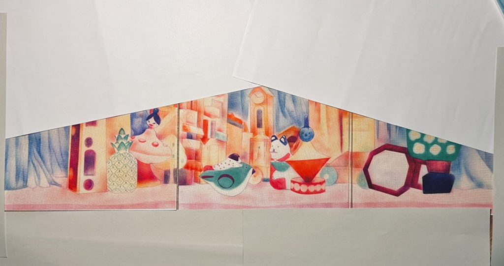 The print medium is risograph. In order to restore the work, all the printing this time used riso dual drum four-color printing. I chose to print on single sheets due to the inks. Works printed in four colors could be highly close to the original work, and works mixed with fluorescent inks will naturally have a bright effect.