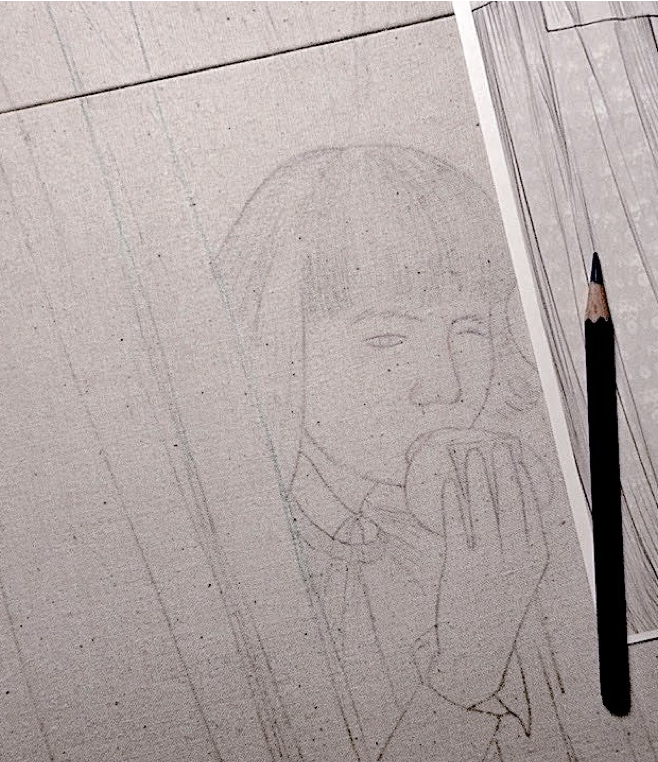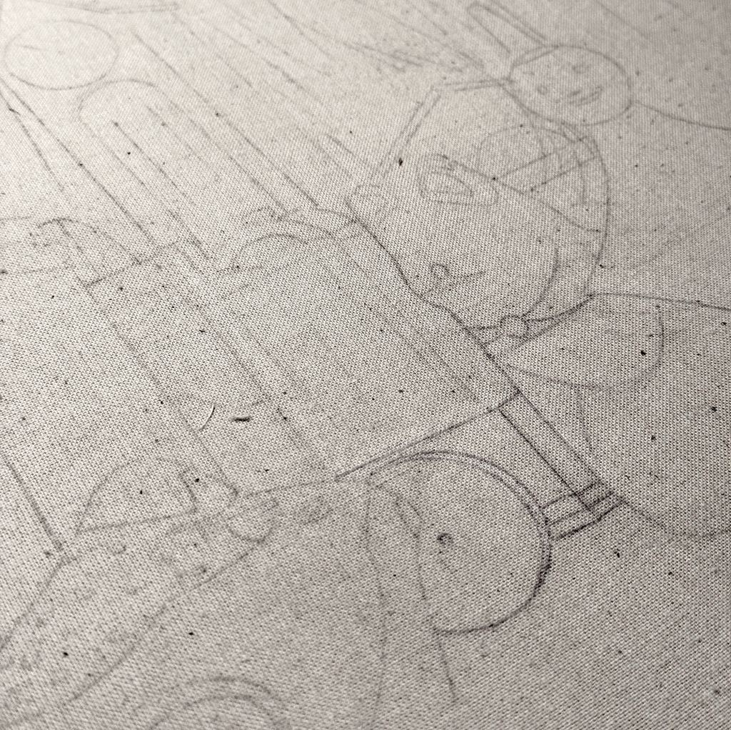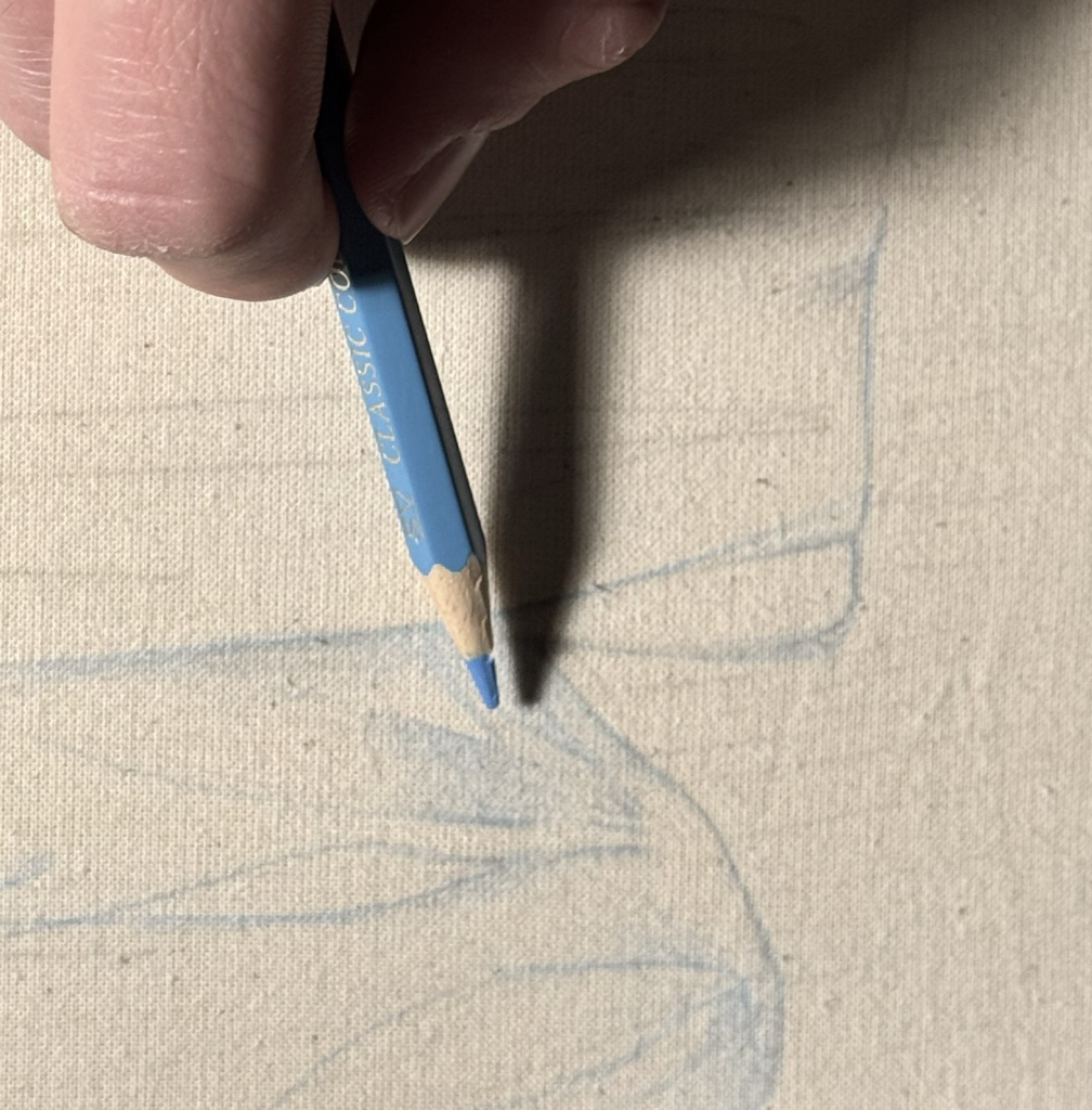 Linen canvas was chosen for its original color and natural grid effect that adds texture when painting. My plan was to paint with pastels, however this medium does not allow for the creation of texture.