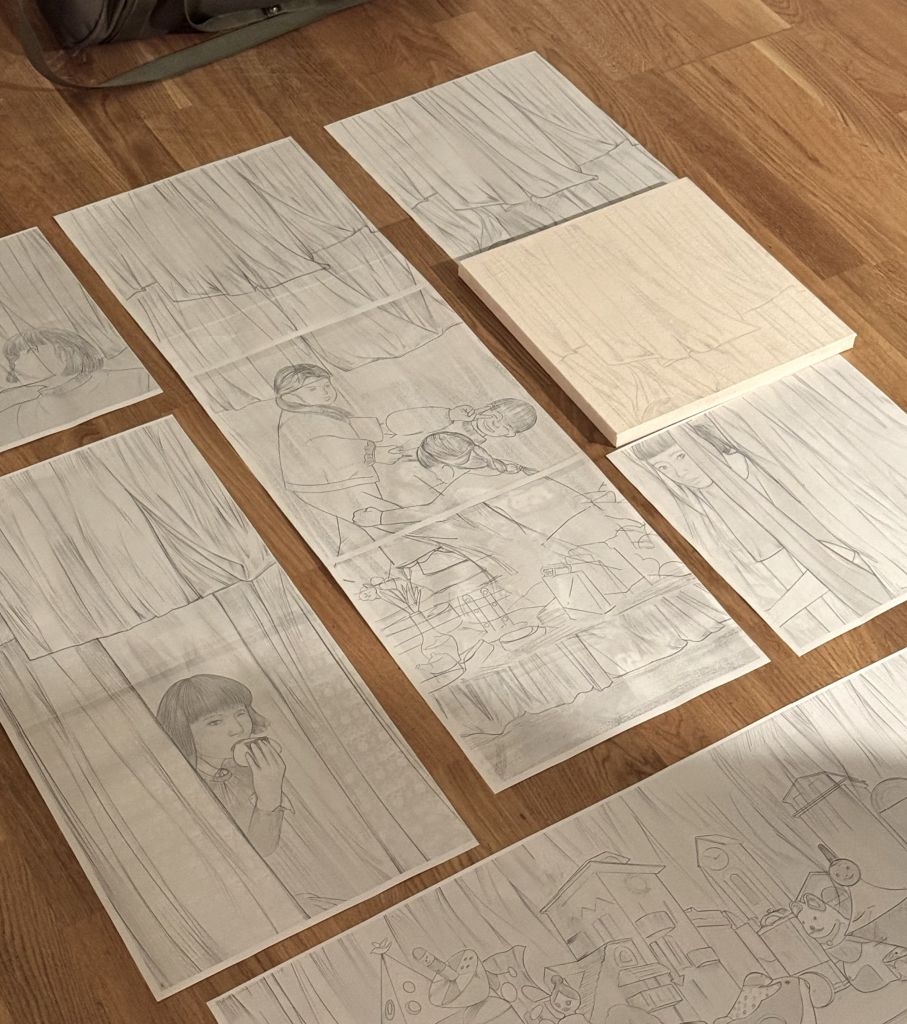 In the 3d workshop I base my drawing and collage image layout to make the wooden frame size.