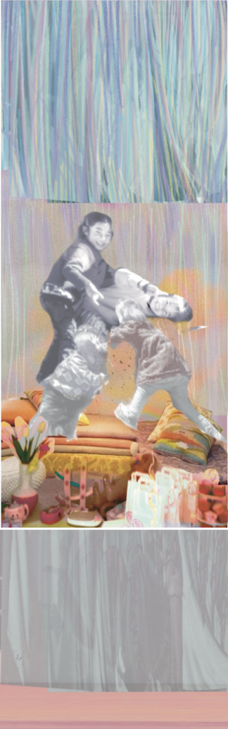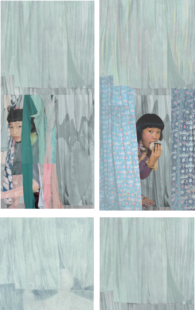 I chose to paint elements like curtains, toys, and groups of children, weaving them together into compositions inspired by the timeless game of hide-and-seek. Through these playful scenes.